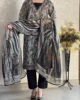 Black never feels out of place. This 3 piece unstitched printed lawn suit in black is a solid choice when you want something dependable, polished, and easy to style. The shirt comes in 2.75 meters of printed lawn, giving you enough fabric to tailor it according to your preferred cut straight, A-line, or something more structured. The 2.25 meter printed dupatta adds detail and completes the look, while the 2.5 meter dyed bottom keeps the outfit balanced and clean. Made from breathable lawn fabric, this unstitched lawn dress is comfortable for warm weather and suitable for daily wear or casual gatherings. The black tone makes it versatile, pairing easily with both minimal and statement accessories. If you’re looking for a practical 3 piece lawn suit with timeless appeal and quality fabric, this set fits naturally into any wardrobe.