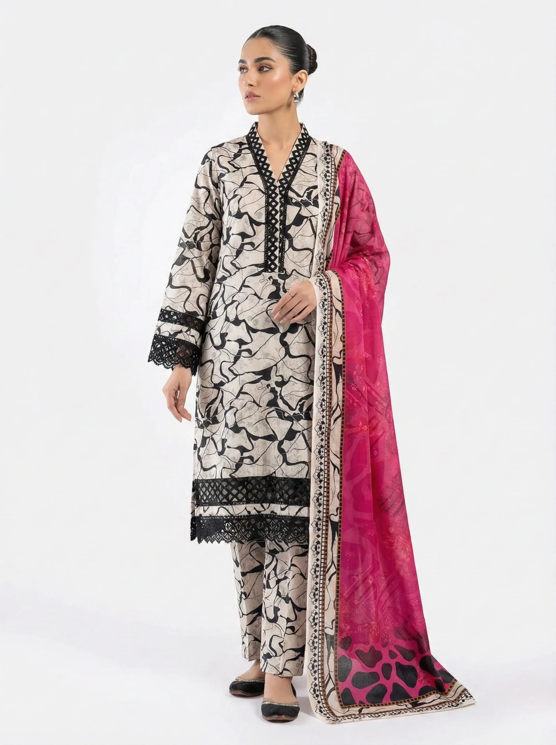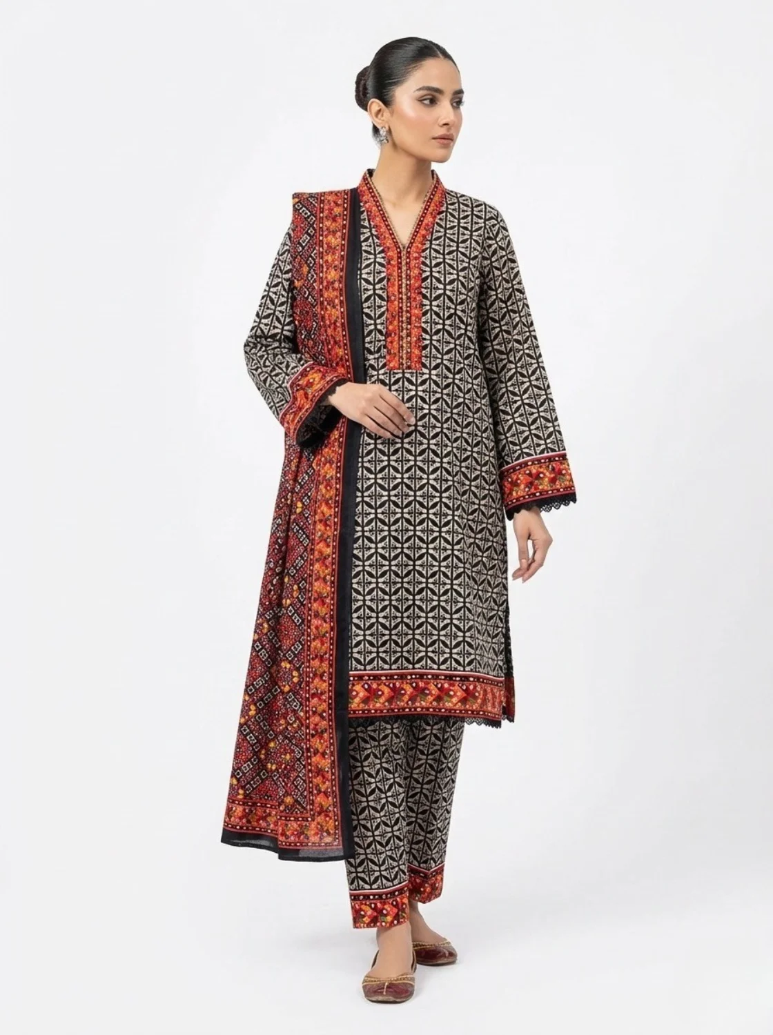 Premium Printed Khaddar Unstitched 3-Piece Suit for Winter
